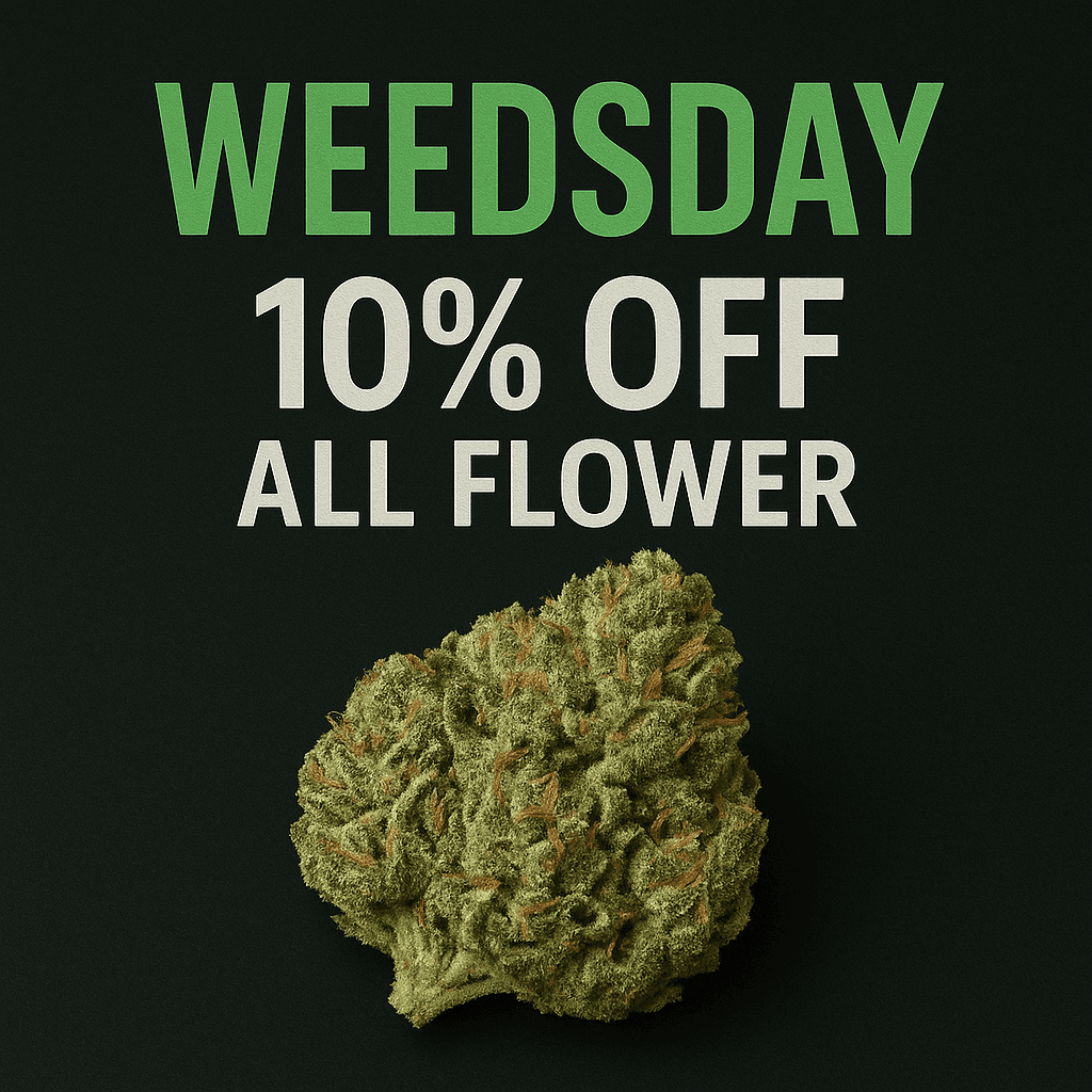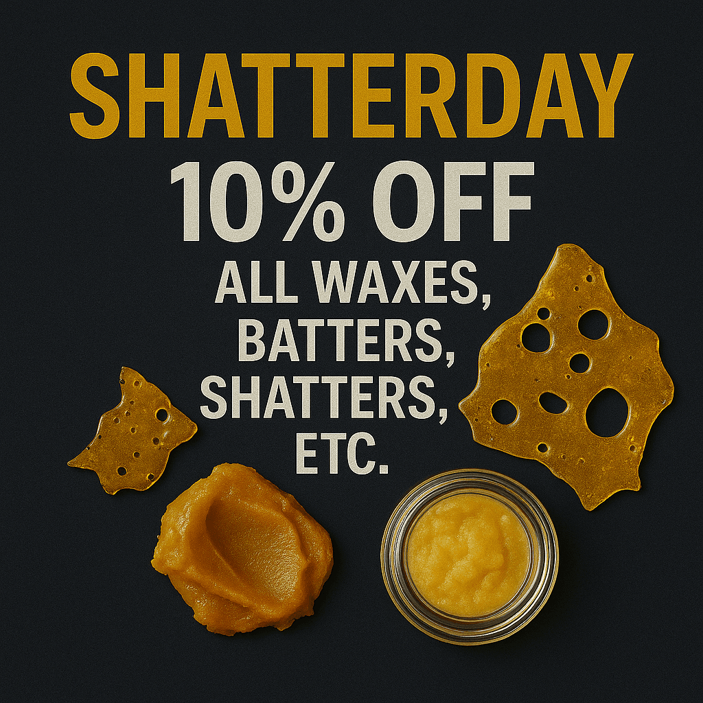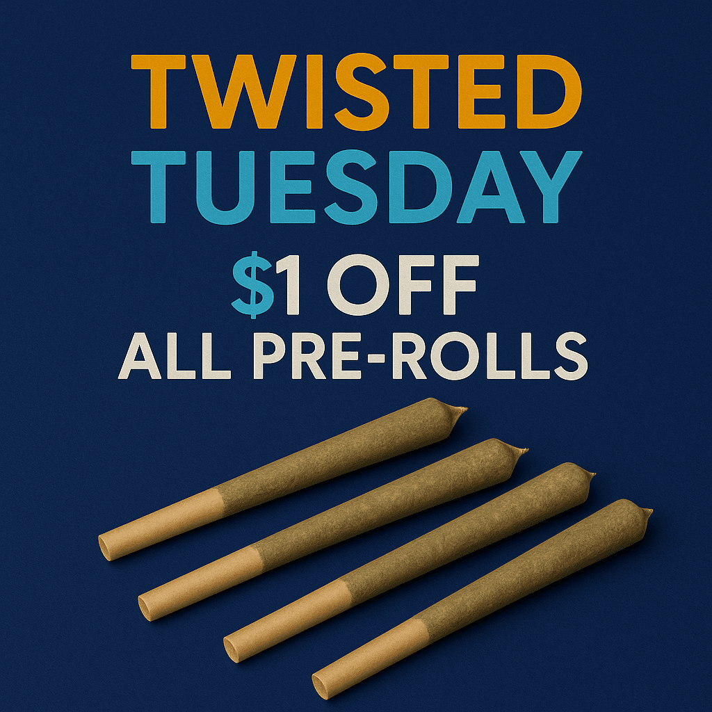 Munchie Monday kicks off the week with unbeatable savings on edibles, perfect for those looking to indulge. Twisted Tuesday brings the fun with special deals on pre-rolls and infused options. Come midweek, Weedsday offers discounts on premium flower strains — your go-to day for top-tier bud at a lower price. Thursday features discounts on vape carts and disposables — a favorite among our regulars. On Friday, We have all of our accessories on special. Pick up a vaporizer or battery, or a new piece of glass to kick off the weekend. Then we roll into Shatterday, where concentrate lovers can save big on potent extracts and dabs. Finally, Sunday is your chance to stock up for the week with mellow deals across multiple categories.