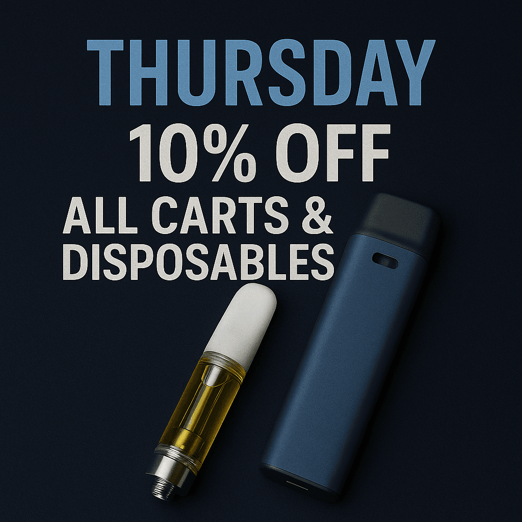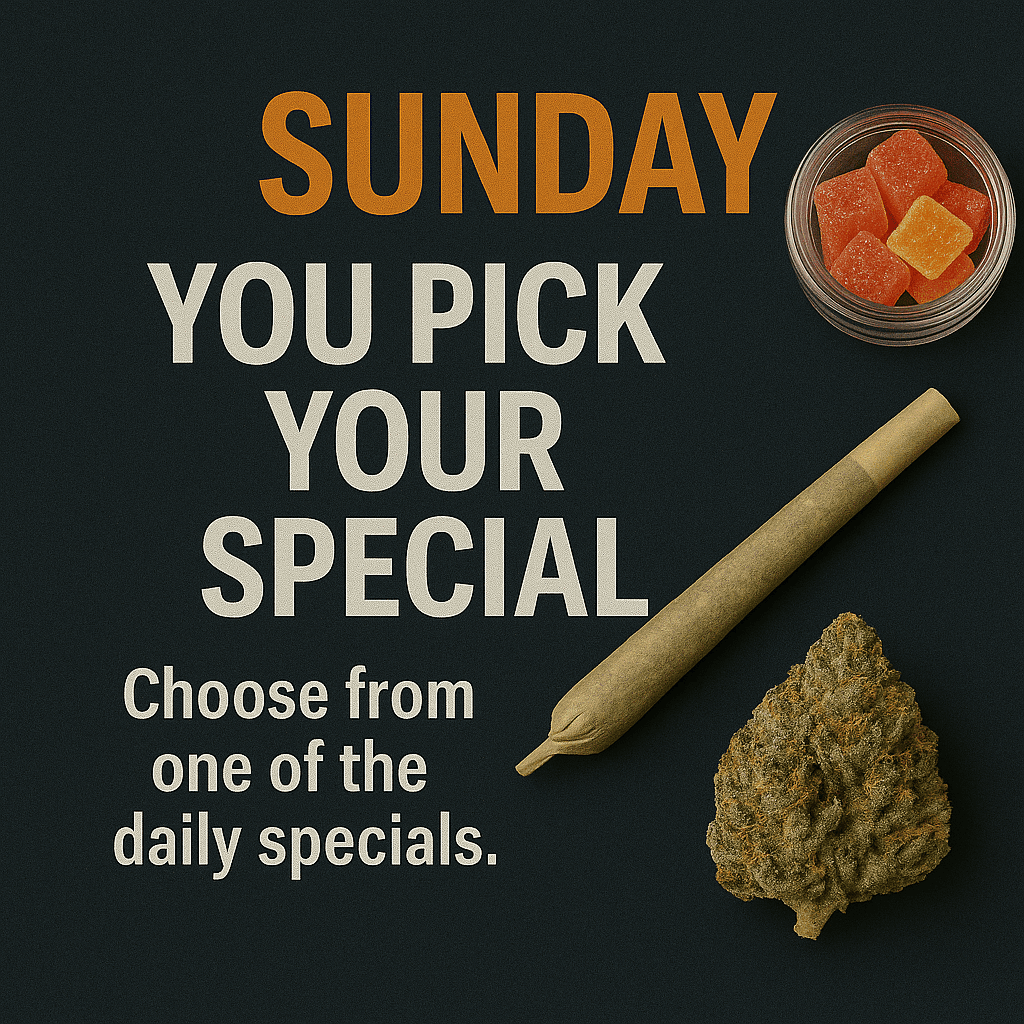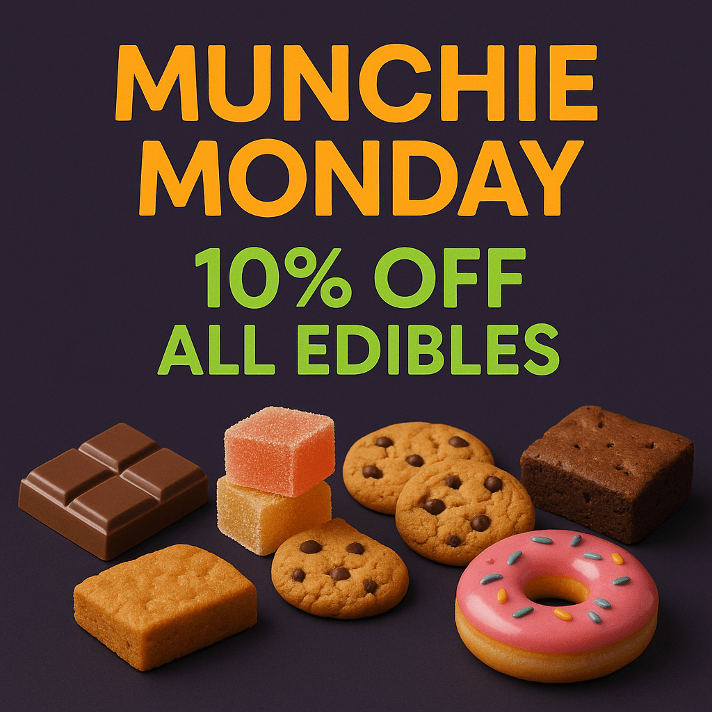 Munchie Monday kicks off the week with unbeatable savings on edibles, perfect for those looking to indulge. Twisted Tuesday brings the fun with special deals on pre-rolls and infused options. Come midweek, Weedsday offers discounts on premium flower strains — your go-to day for top-tier bud at a lower price. Thursday features discounts on vape carts and disposables — a favorite among our regulars. On Friday, We have all of our accessories on special. Pick up a vaporizer or battery, or a new piece of glass to kick off the weekend. Then we roll into Shatterday, where concentrate lovers can save big on potent extracts and dabs. Finally, Sunday is your chance to stock up for the week with mellow deals across multiple categories.